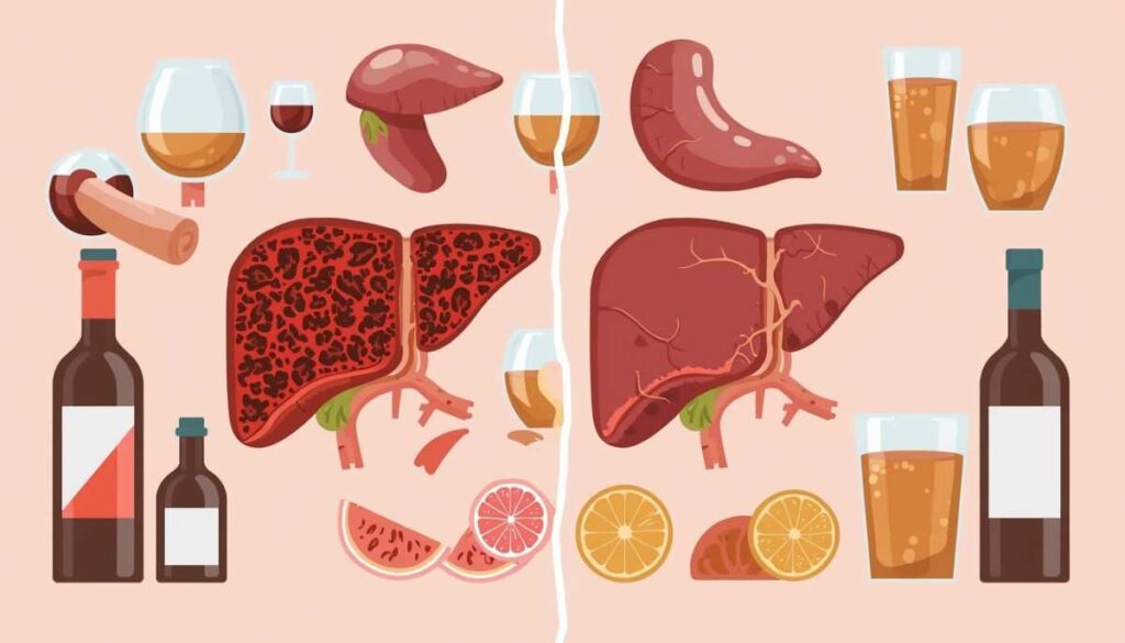 Alcohol directly damages liver cells and reduces its ability to function properly.
